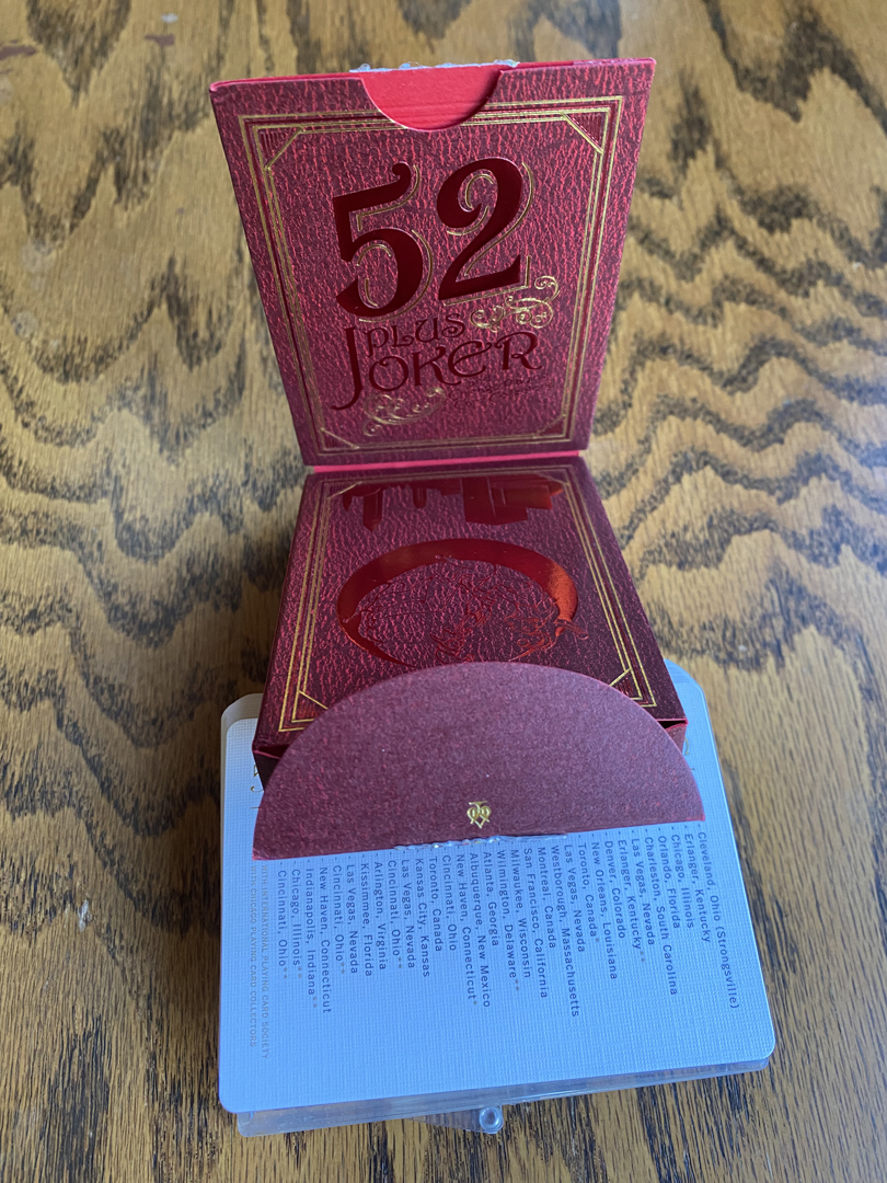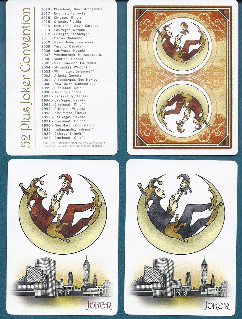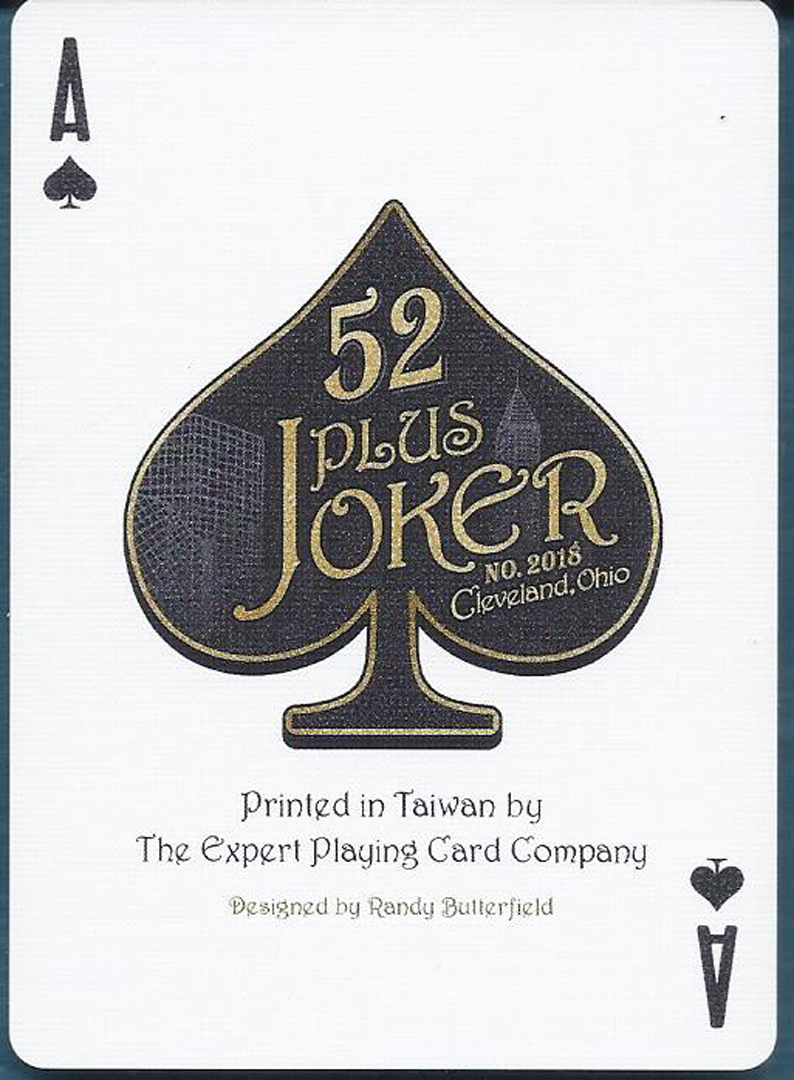 Mint 2018 Club deck. #384/500, by Randy Butterfield. Deck features unique courts, beautiful Jokers with club logo and an extra card listing all 52 Plus Joker conventions to date. Very clever box design, see photo.