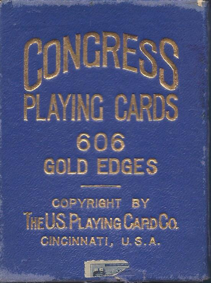 USPC issued six Congress decks featuring major universities: Michigan plus five from the Ivy League. All are scarce. Gold edges remain at about 60%; Joker slightly darker tone, maybe from exposure on top of deck.