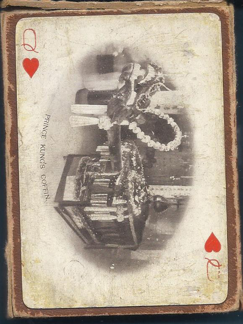 Souvenir deck featuring Peking and Chinese views from the Boxer Rebellion, with nice gold-edged cards. Deck shows light edge wear; box is falling apart. A striking historical piece for collectors.