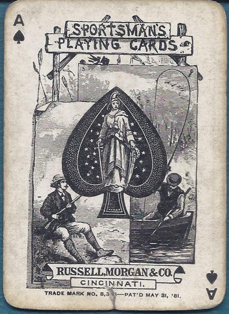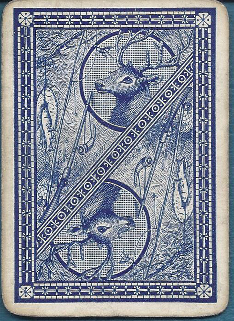 First Russell & Morgan Sportsman Ace and Joker; back name is Blue Deer. Cards are Good with soil from use; Joker has light notation as JH and AS has small edge tear.